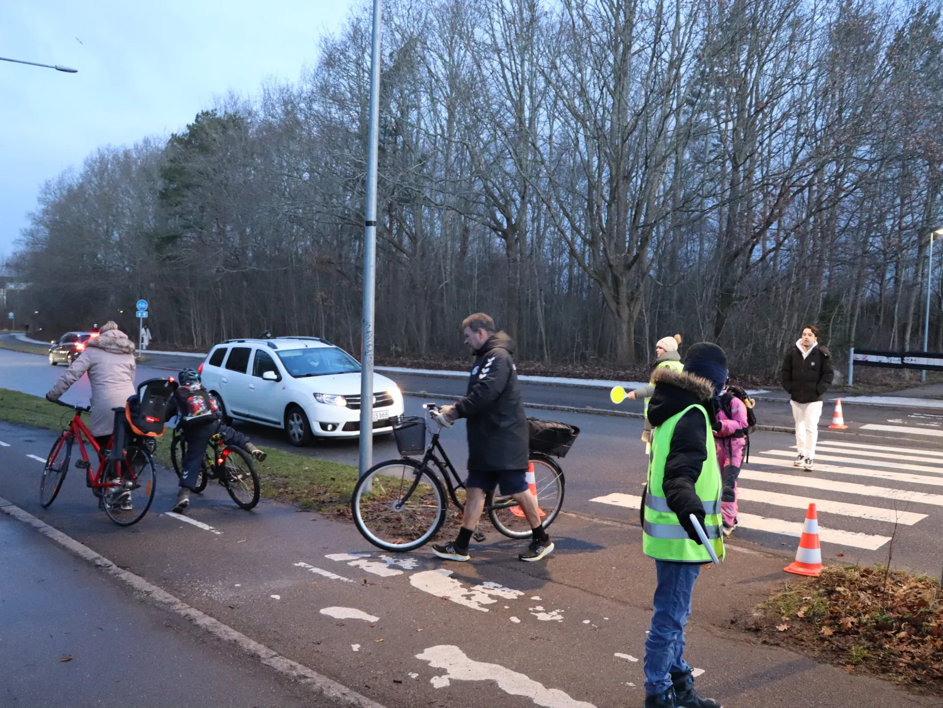 Hver dag tæller de, hvor mange de hjælper over vejen - og ofte er det omkring 130 børn og voksne.